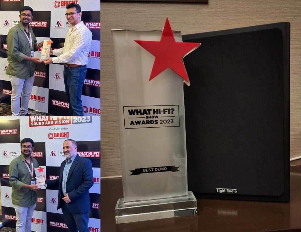 In 2023, Eight Audio International Pvt. Ltd. proudly received the Best Demo Award at What Hi-Fi? India